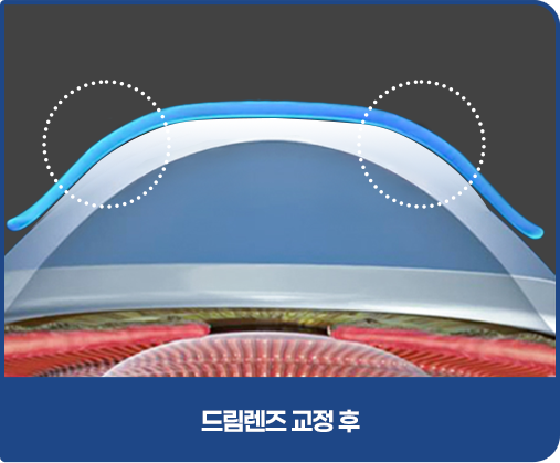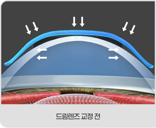 드림렌즈는 렌즈의 후면에 의해 각막이 눌려져서 평평해짐에 따라 시력이 교정되는