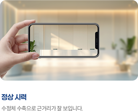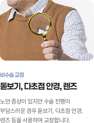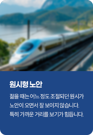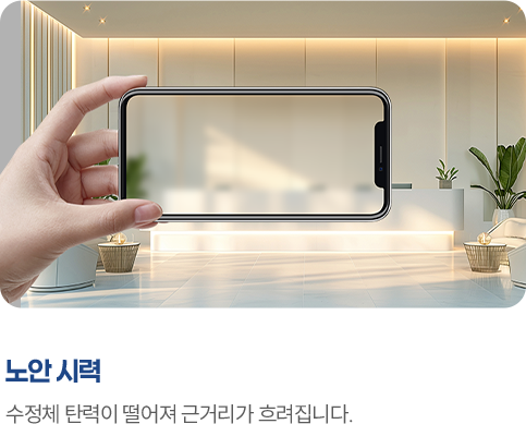 이때 수정체의 조절 능력이 약화되어 가까운 거리의 물체나 글씨를 보기 힘들어지는